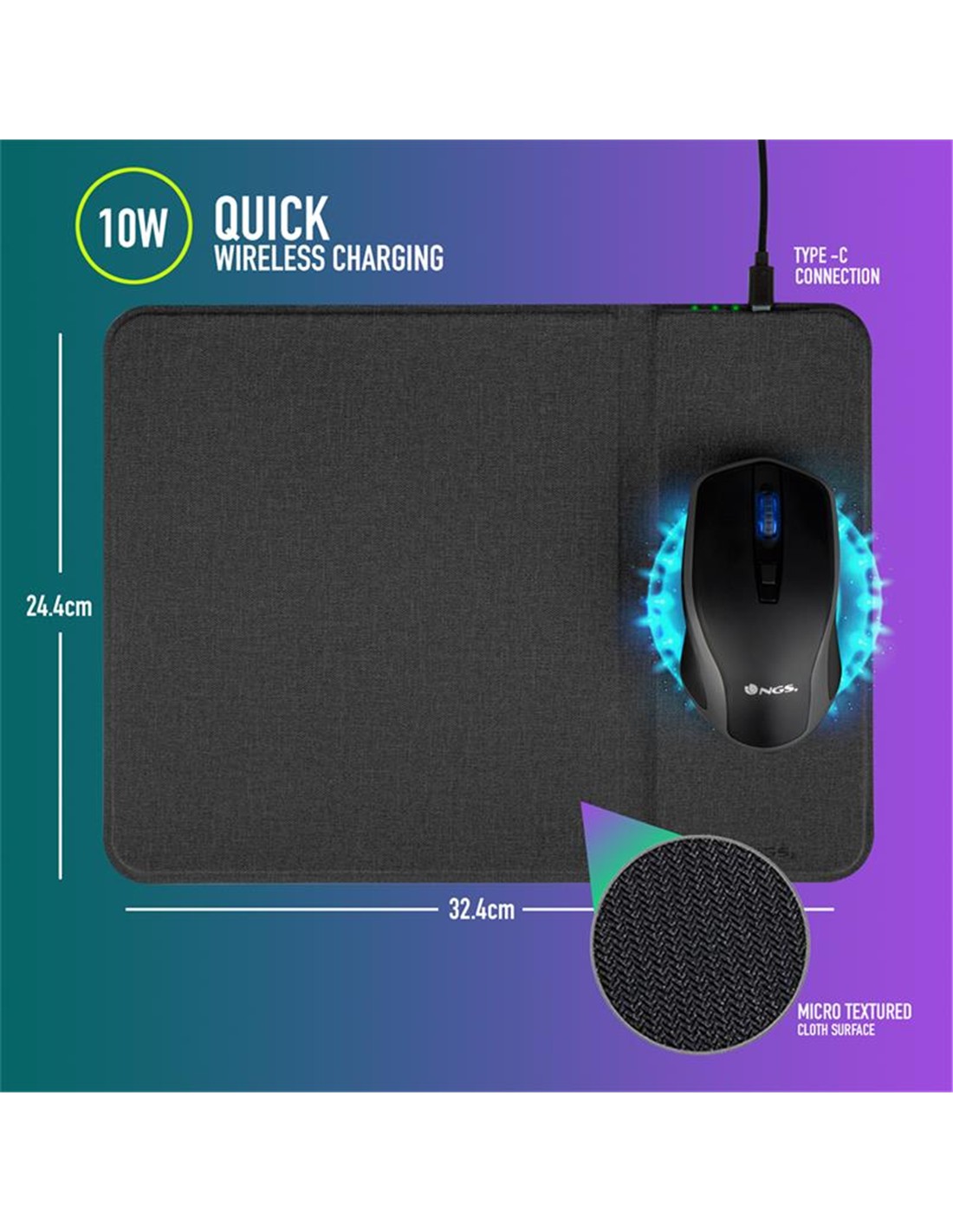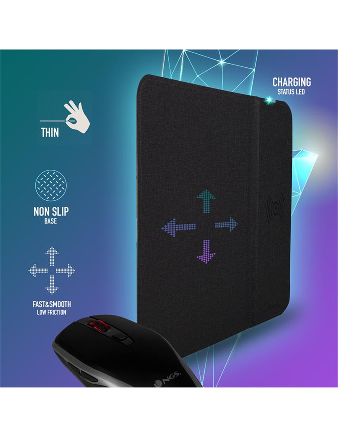 - Ratón inalámbrico con batería incorporada y alfombrilla con carga inalámbrica - Entrada: 5V/2V, 9V/1,67 A - Salida: 10W |