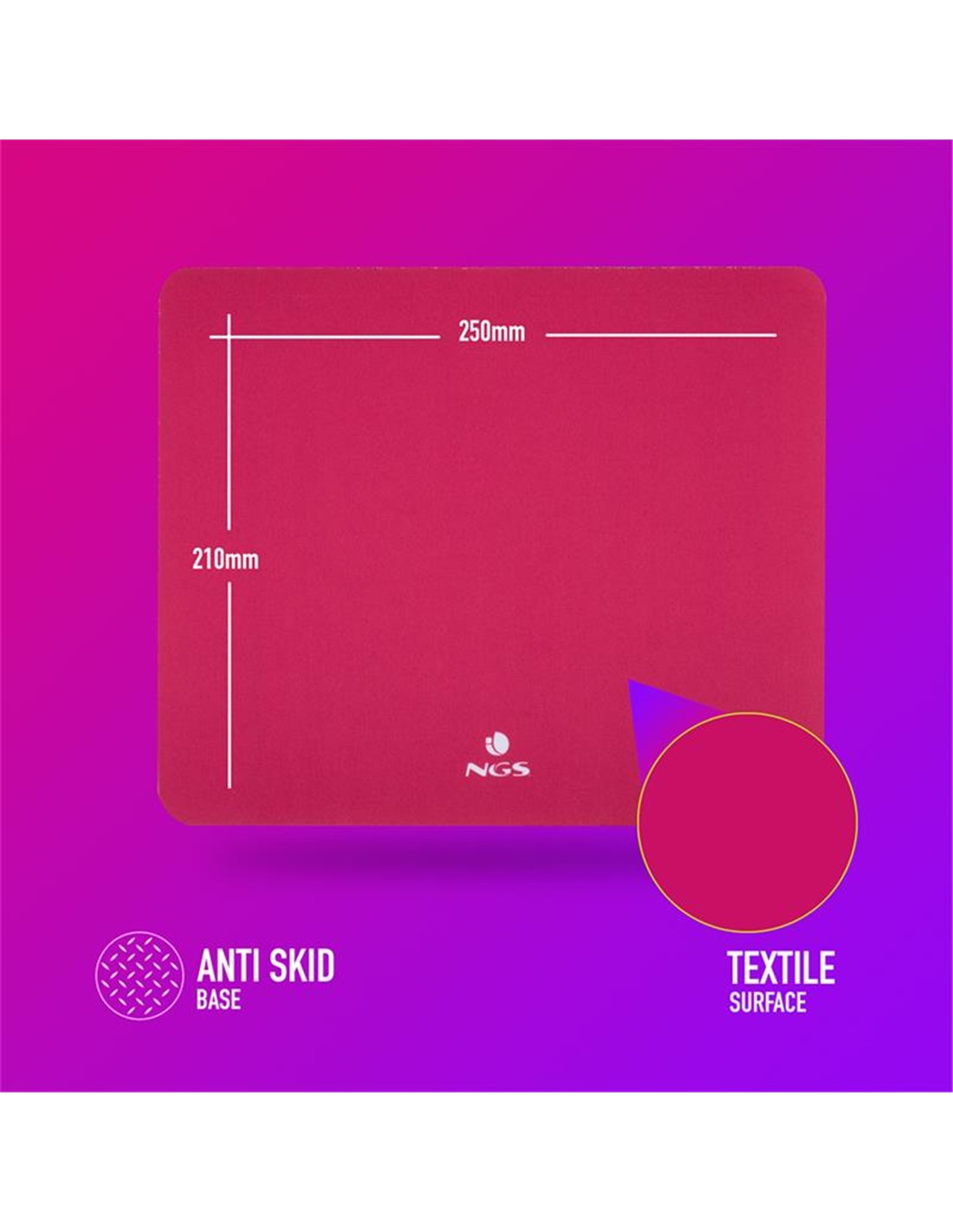 Fabricado en tela (microfibra) con materiales duraderos y de alta densidad. El ratón se puede mover rápidamente y colocar con precisión en la superficie ultrasuave, uniforme y sin relieves que presenta NGS Kilim.