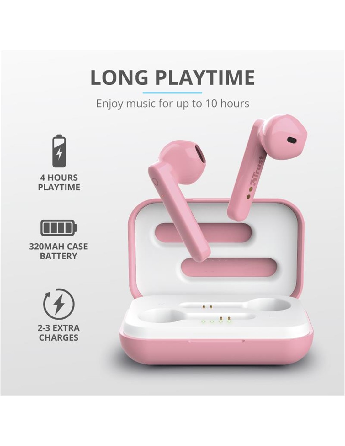 Los auriculares inalámbricos Primo Touch de Trust ofrecen libertad de movimiento con un alcance inalámbrico extralargo y funciones para cargarlos en cualquier lugar. Y, gracias a su diseño, no solo te moverás con libertad, sino también con estilo.