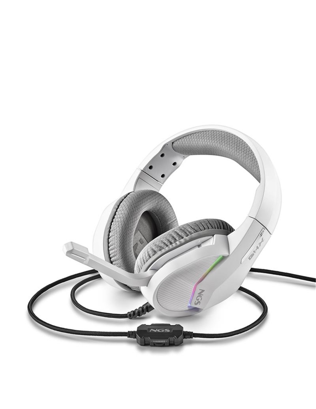 Auriculares gaming NGS GHX-515 acolchados con diadema de malla ajustable equipados con micrófono regulable, botón de silencio y volumen integrado en el cable. Destaca por su original estética en color blanco, iluminación RGB así como por su calidad de sonido nítido.