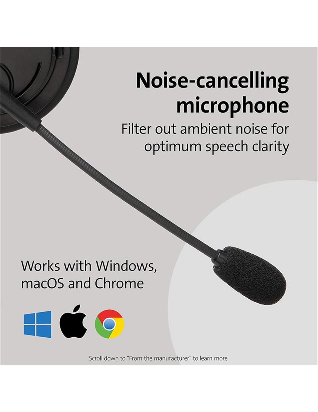 - El micrófono con supresión de ruido utiliza tecnología de resistencia pasiva para suprimir el ruido ambiental y ofrecer una voz clara óptima.