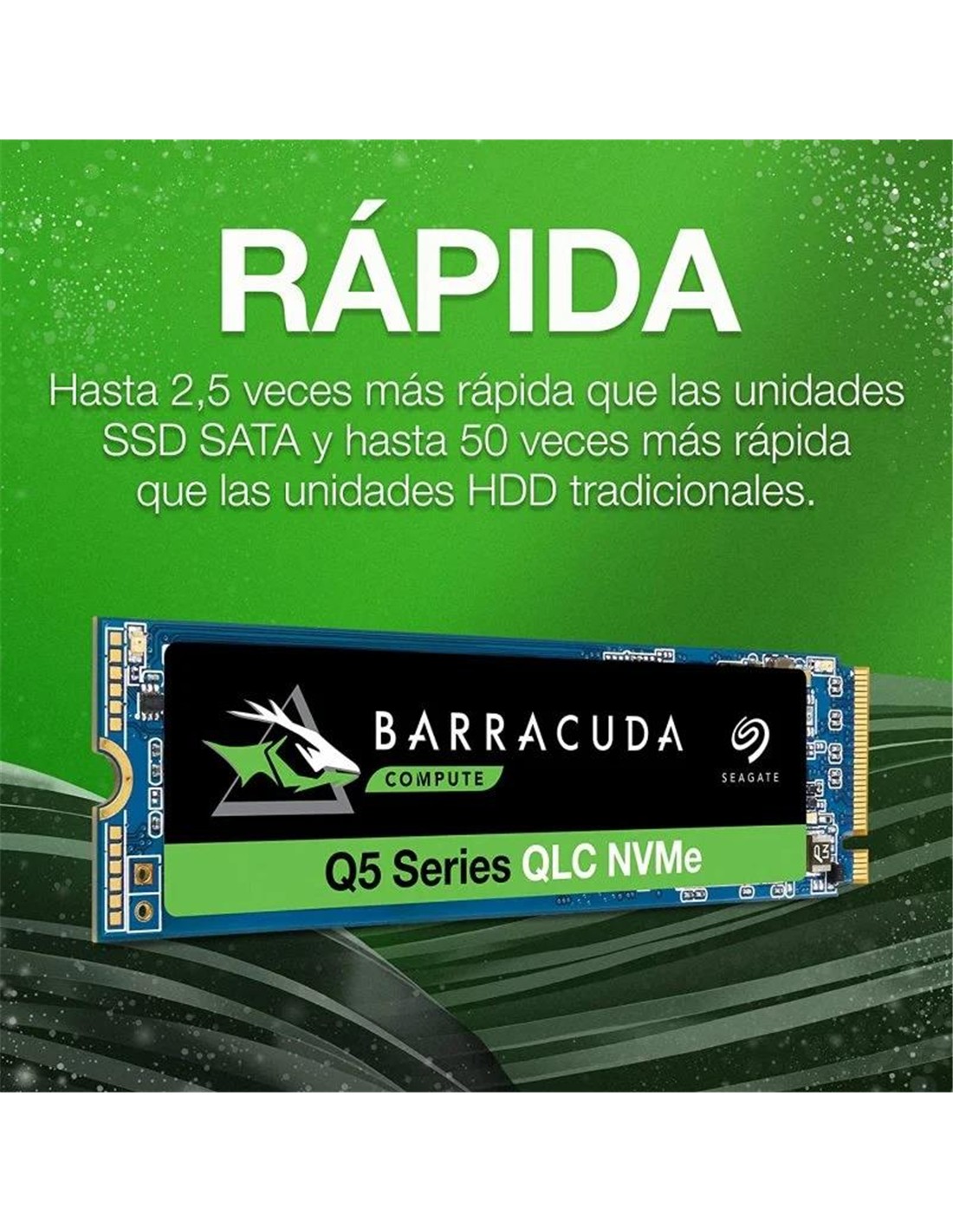 Actualice su PC o cree un sistema eficiente con la unidad Seagate BarraCuda Q5. Diseñada con la última tecnología 3D QLC NAND, esta unidad SSD NVMe ofrece unas velocidades de rendimiento hasta 50 veces más rápidas que las unidades de disco duro tradicionales. El formato delgado de M.2 2280 proporciona una compatibilidad óptima y una instalación plug-and-play sencilla.