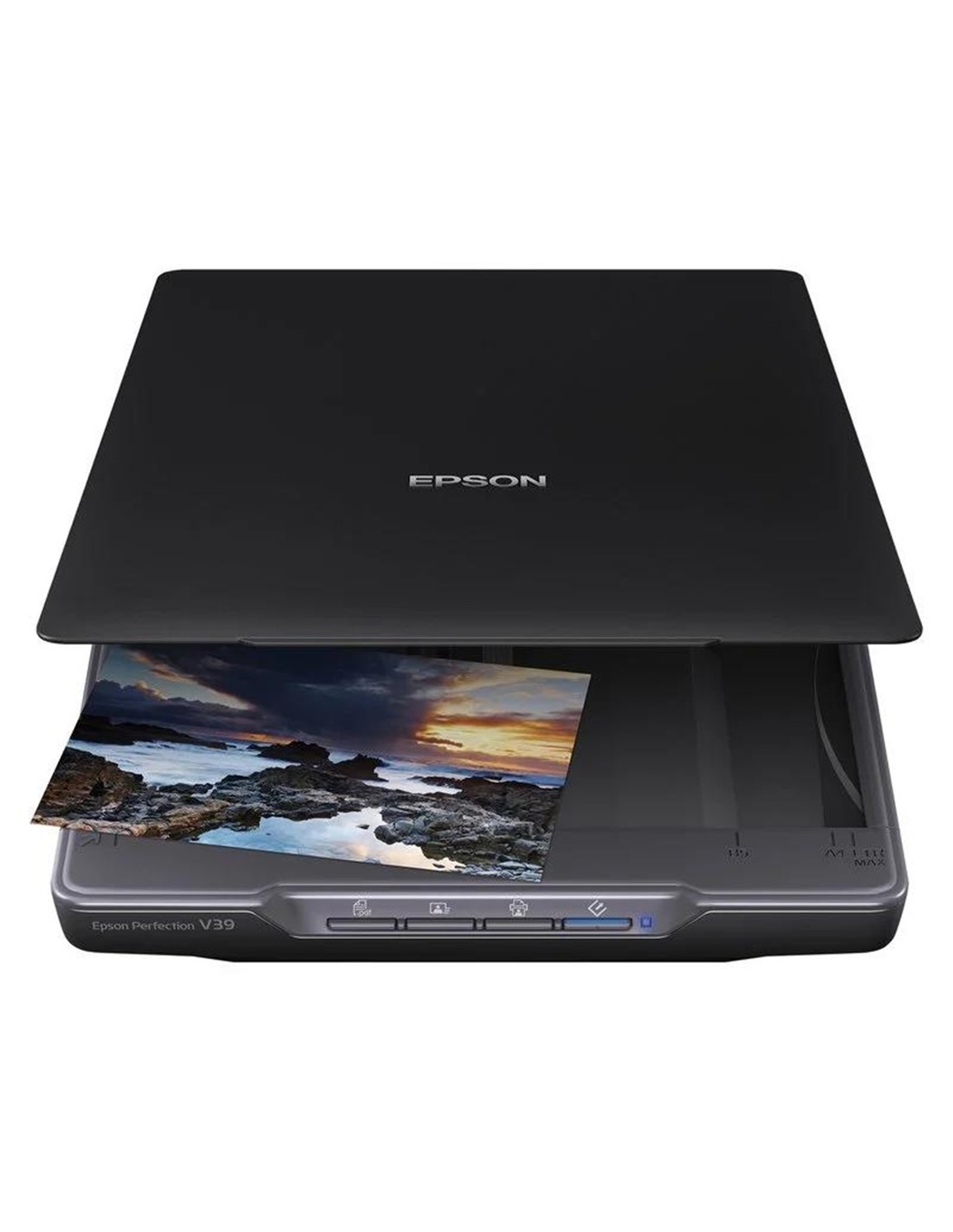 Captura, almacena y comparte tus imágenes y documentos de manera rápida y sencilla con este escáner Epson Perfection V39II de diseño fino y compacto para el hogar y la oficina.