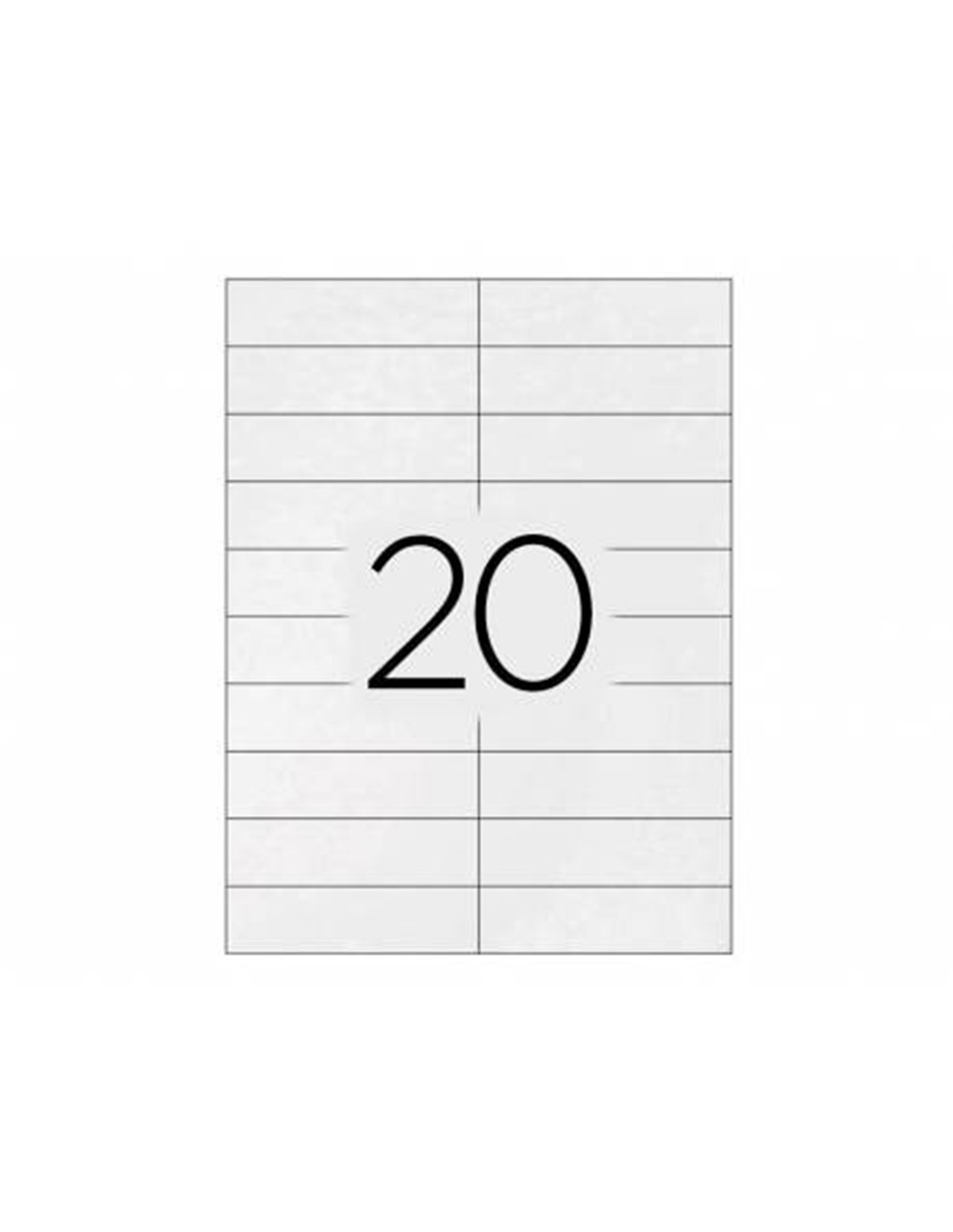 Etiquetas blancas adhesivas multifunción con cantos romos en caja de 100 hojas. Medida de las etiquetas 105 x 29 mm.