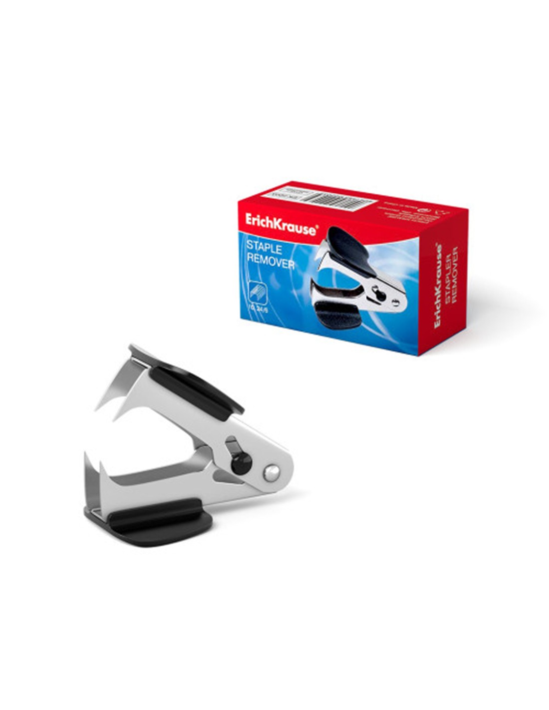Quitagrapas producido con plastico resistente a los golpes y mecanismo de acero galvanizado de alta calidad. Con tope incorporado para almacenamiento en posicion plegada.