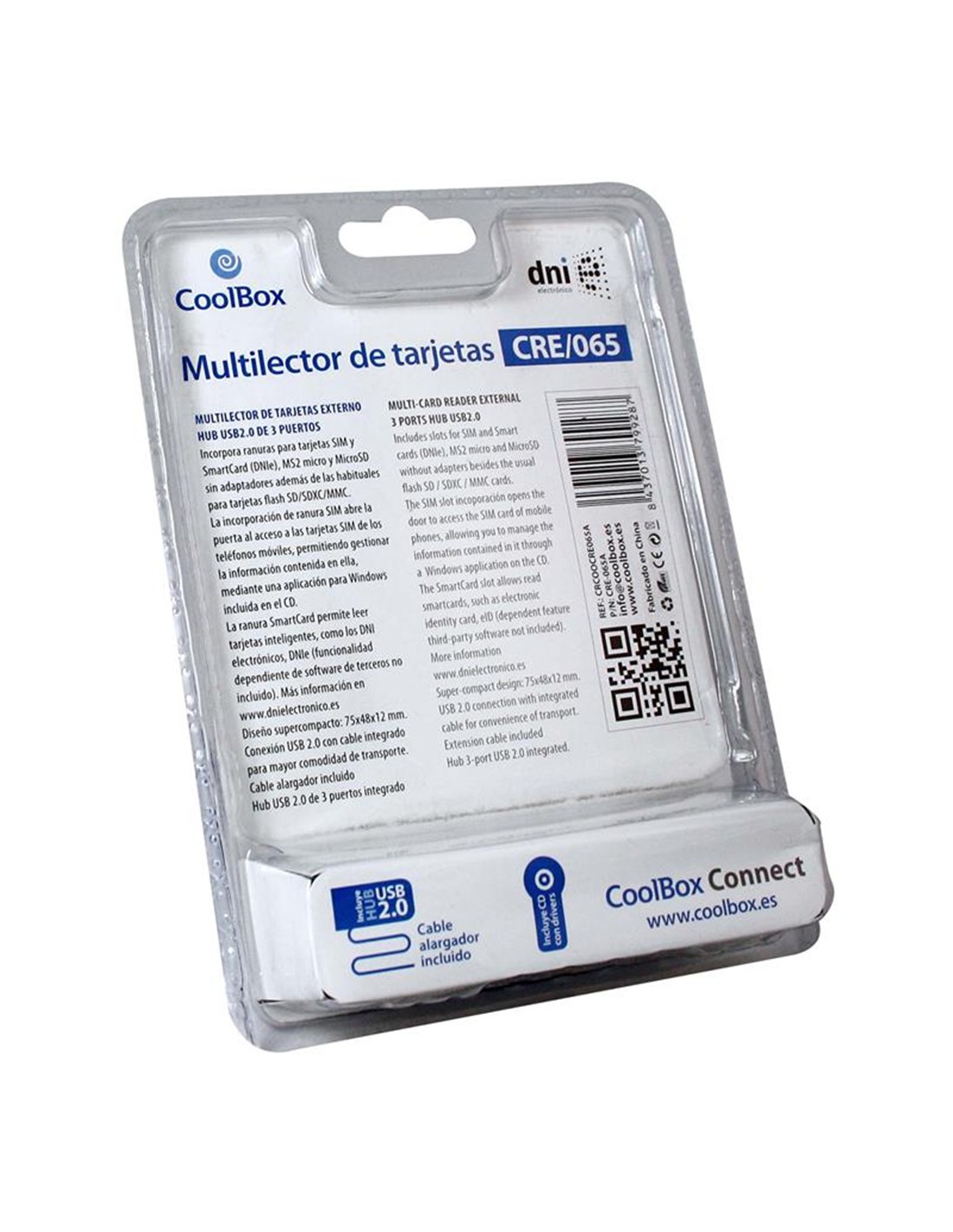 Lector de tarjetas externo capaz de leer la práctica totalidad de la tarjetas del mercado: SD, MMC, Micro SD y todas sus variantes. El modelo CRE-065 es el multilector de tarjetas externo más completo. Incorpora ranuras para tarjetas SIM y SmartCard (DNIe), MS2 micro y MicroSD sin adaptadores además de las habituales para SD/SDXC/MMC.