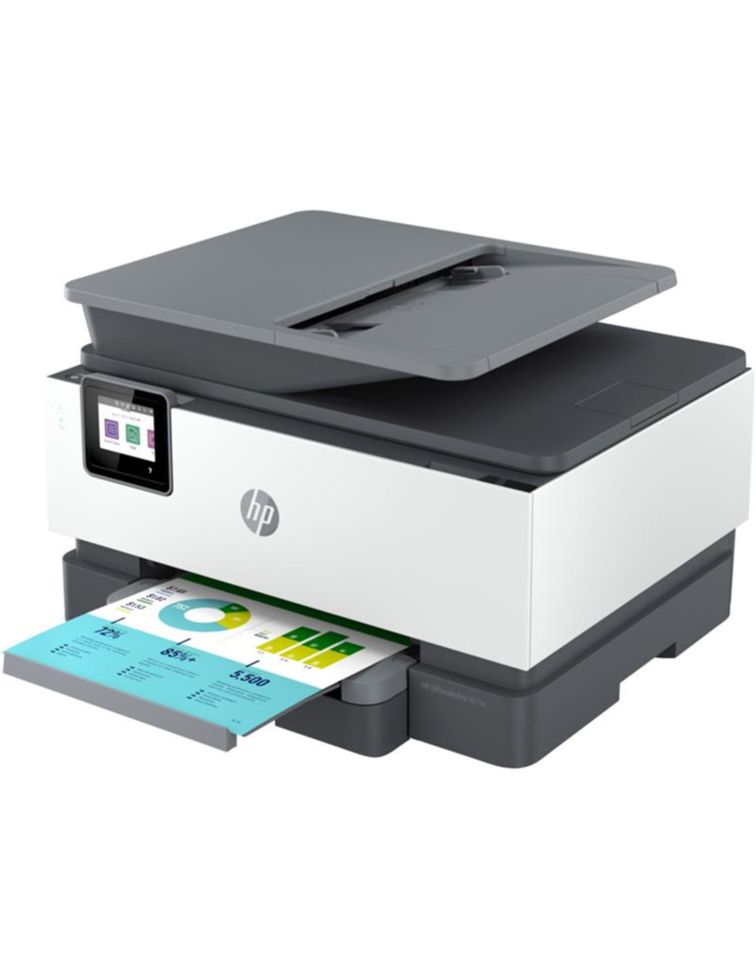 Completa funcionalidad y productividad. Disfruta con HP Officejet Pro 9010e de velocidades de impresión rápidas de hasta 22 ppm, una impresión automática a doble cara, una conectividad Wi-Fi fiable y una gran bandeja de papel de 250 hojas.