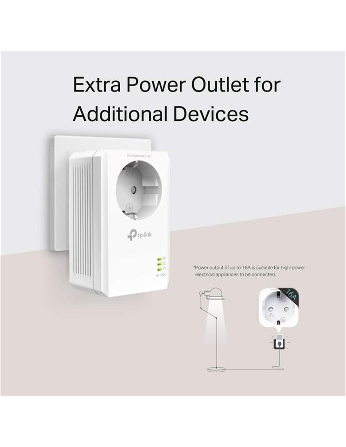 - Enchufe incorporado para dispositivos adicionales: ¿Te resulta difícil conectar tus dispositivos? El KIT TL-PA7017P tiene una toma de corriente de CA integrada. Su adaptador de línea eléctrica ahora se puede usar como una toma de corriente tradicional. Conecta tu televisor inteligente o consolas de juegos al adaptador. No queda zócalo que perder. El filtro de ruido incorporado ayuda a evitar que el ruido de la señal eléctrica afecta al rendimiento de tu línea eléctrica. * La potencia de salida de hasta 16 A es adecuada para conectar aparatos eléctricos de alta potencia.