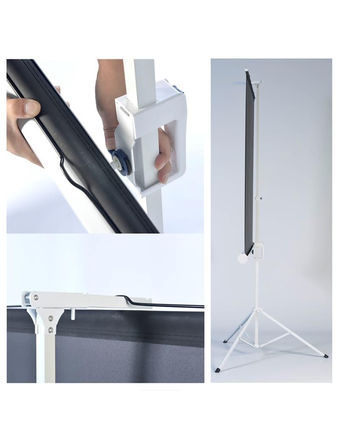 DIFERENTES FORMATOS DE PROYECCIÓN: La pantalla de proyección de trípode es adaptable a varios formatos de proyección: 4:3, 16:9? con tan solo ajustar el tamaño de despliegue, es decir, podemos regular el tamaño de la pantalla que deseamos que se vea. La diagonal de la pantalla es de 112 pulgadas y ofrece una imagen nítida sin brillos gracias al tipo de tela.