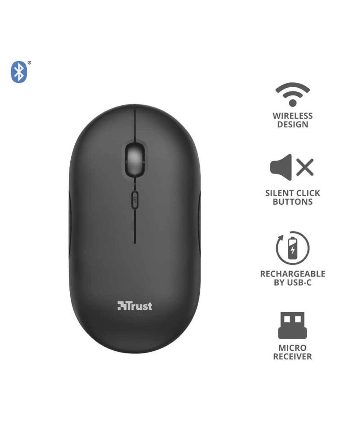 El ratón Puck de Trust está diseñado para ser la solución ideal ante cualquier exigencia del trabajo fuera de casa. Este ratón inalámbrico ultrafino es lo bastante pequeño para llevarlo encima sin por ello sacrificar la facilidad de uso. Está equipado con todas las funciones que necesita, como doble conectividad inalámbrica, botones silenciosos y batería recargable. Y es apto tanto para usuarios zurdos como diestros.