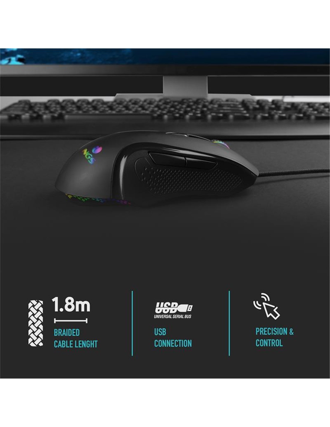 Ratón gaming con retroiluminación LED para videojuegos. Compatible con PC/PS4/PS5/XBOX One y XBOX X/S