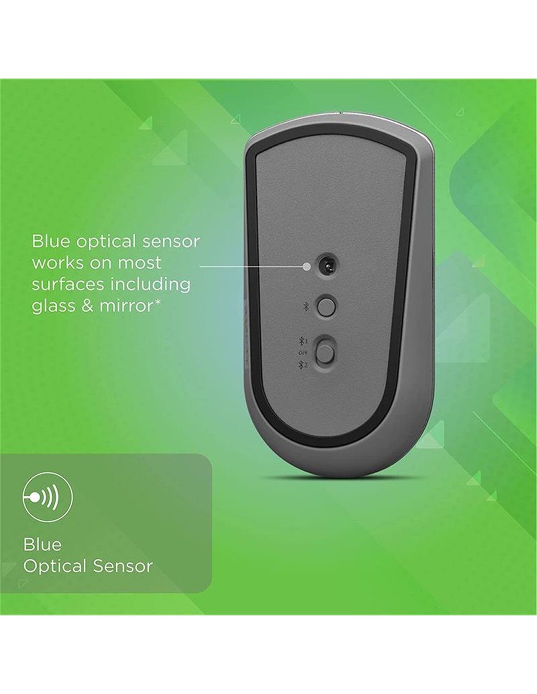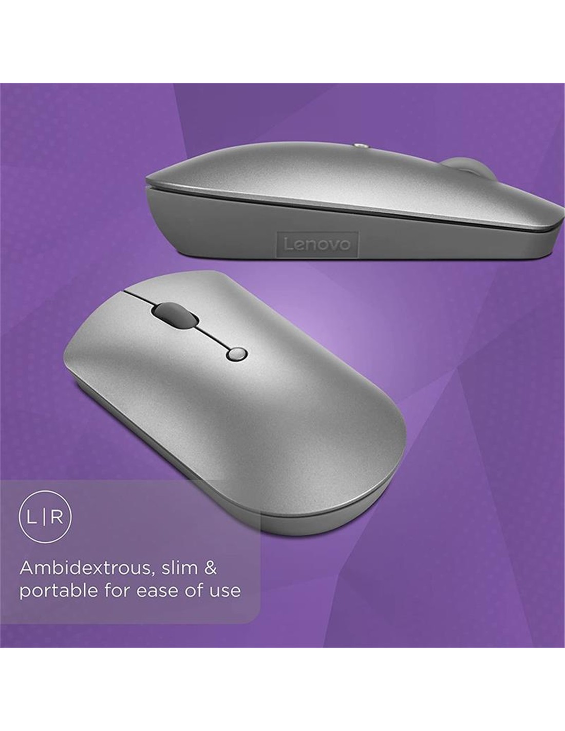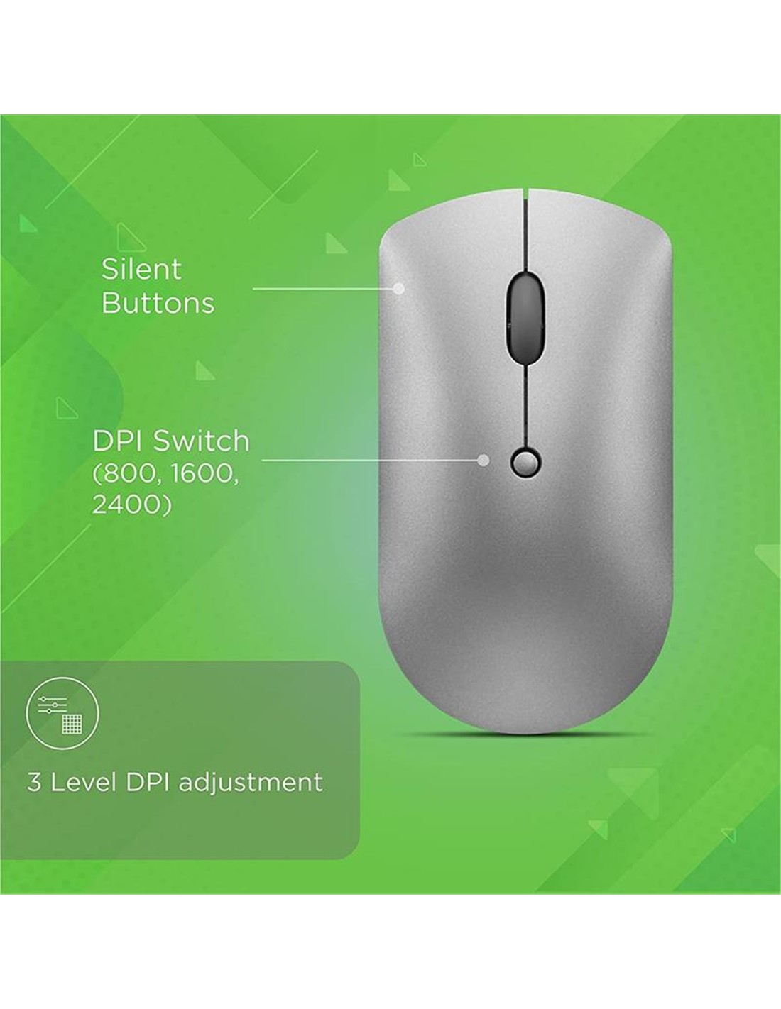 The Lenovo 600 Bluetooth Silent Mouse takes a well-worn concept and turns it on its head, delivering a productivity device that doesn?t get in the way of the busy individuals who use it. It sculpted to be comfortable to rest your palm on, with a low-profile, minimalist design that makes the mouse easy to carry and fit into pockets without bulging. Get more done with the blue optical sensor that allows you to work on most surfaces, revolutionary, distraction-free silent buttons, and on-the-fly adjustable DPI controls. Effortlessly pair with up to two devices at once and quickly switch between them with the push of a button, thanks to Bluetooth 5.0 and Microsoft Swift Pair technology.