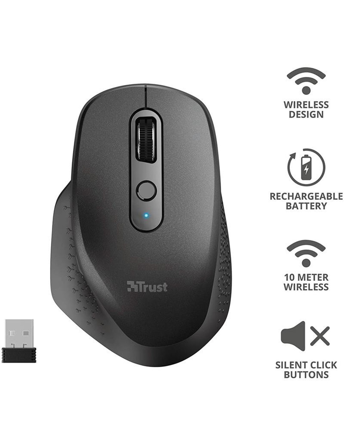 El Ozaa de Trust es una forma fácil de tener el escritorio despejado sin cables. Es inalámbrico y se suministra con un práctico receptor micro-USB que tiene un alcance de hasta 10 metros. Para tener el escritorio ordenado.
