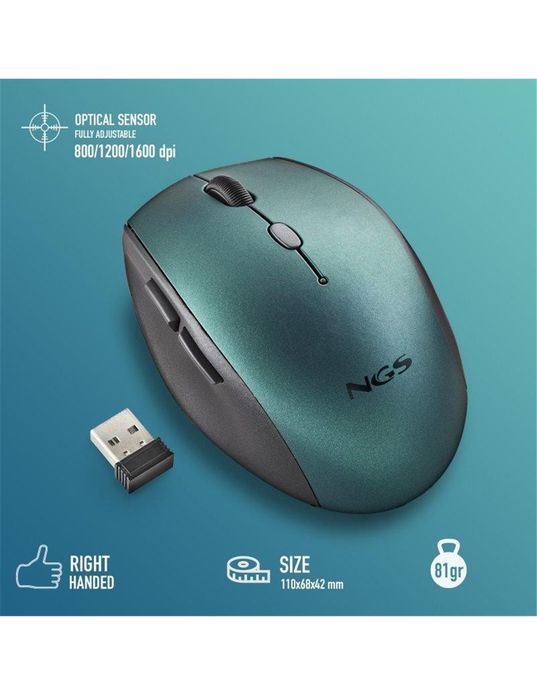 - DPI totalmente ajustable: 800/1200/1600