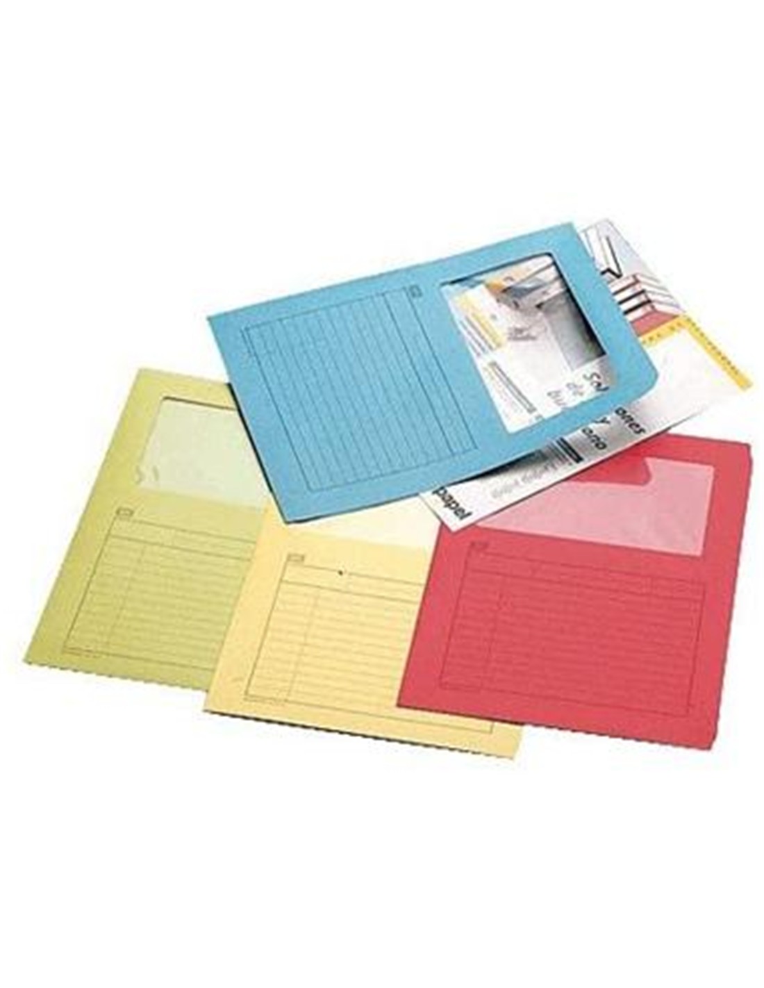Fabricadas en cartulina reciclada de 180g, con hendidos para incorporar fástener en la parte superior y en el lateral. Capacidad máxima 100 hojas. Subcarpeta cartulina Folio colores pastel roja con ventana.