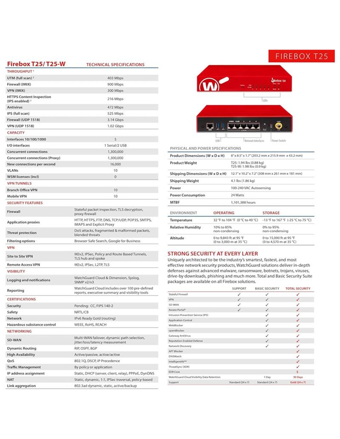 FIREWALL WATCHGUARD FIREBOX T45-POE NFR 1YR BASIC SECURITY SUITE