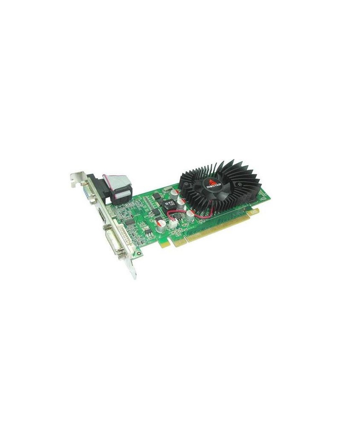 Biostar GeForce 210 1GB. Familia de procesadores de gráficos: NVIDIA, Procesador gráfico: GeForce 210, Frecuencia del procesador: 589 MHz. Capacidad memoria de adaptador gráfico: 1 GB, Tipo de memoria de adaptador gráfico: GDDR3, Ancho de datos: 64 bit, Velocidad de memoria del reloj: 1000 MHz. Máxima resolución: 2048 x 1536 Pixeles. Versión DirectX: 10.1, Versión OpenGL: 3.0. Tipo de interfaz: PCI Express x16. Tipo de enfriamiento: Activo