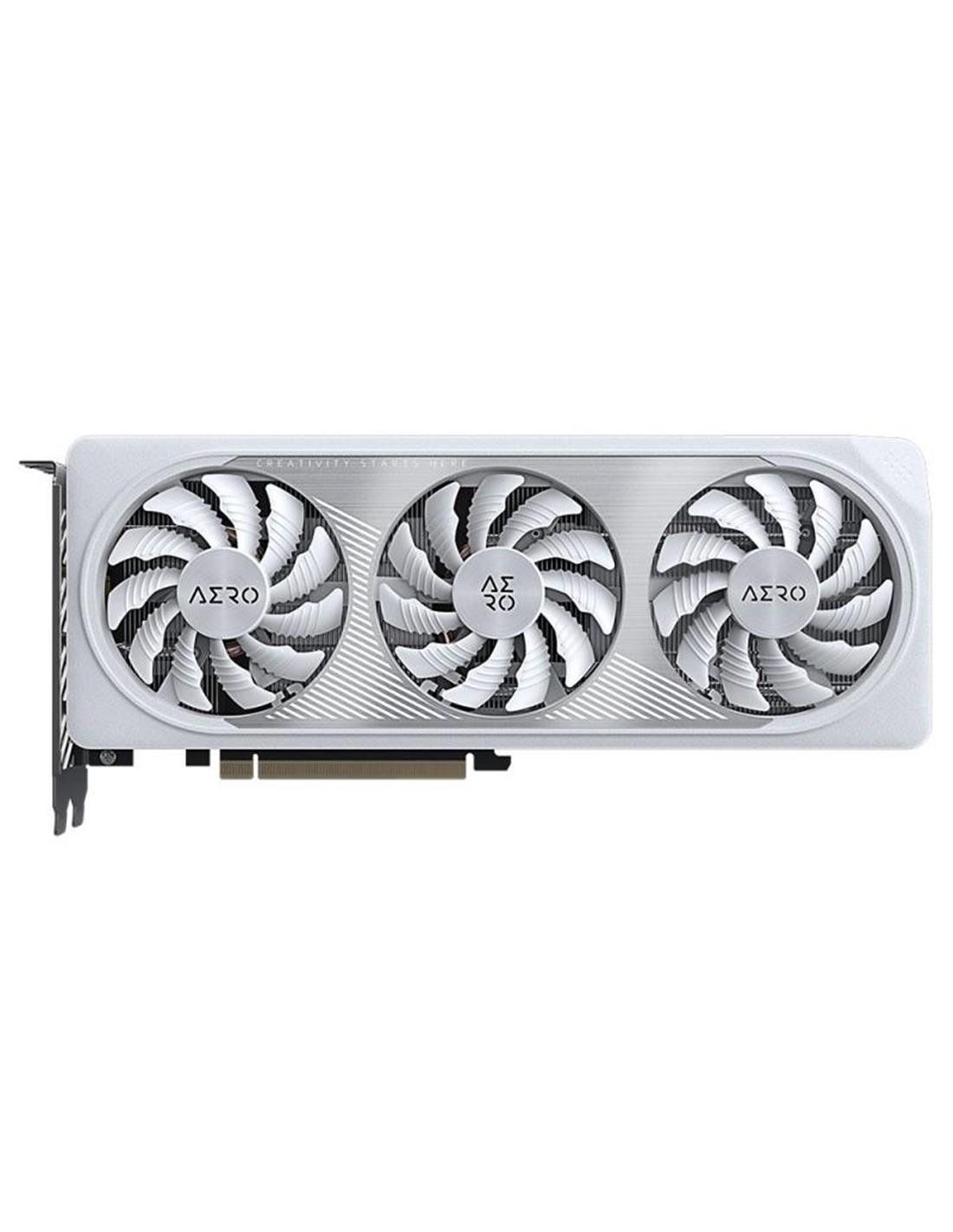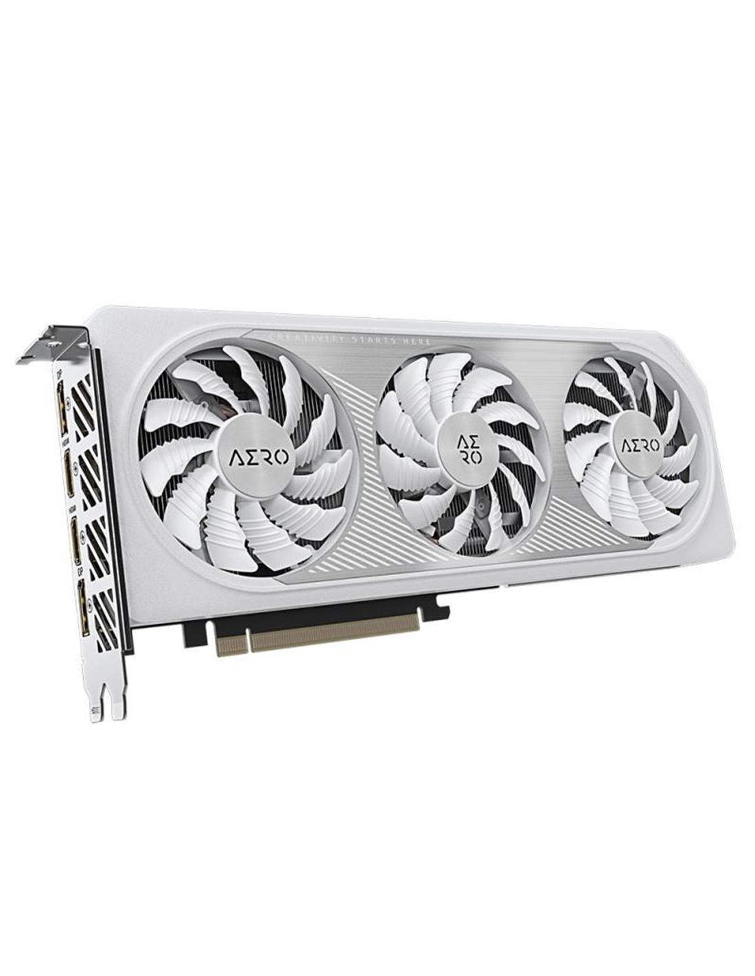 Gigabyte GeForce RTX 4060 AERO OC 8G. Familia de procesadores de gráficos: NVIDIA, Procesador gráfico: GeForce RTX 4060, Frecuencia del procesador: 2460 MHz. Capacidad memoria de adaptador gráfico: 8 GB, Tipo de memoria de adaptador gráfico: GDDR6, Ancho de datos: 128 bit. Máxima resolución: 7680 x 4320 Pixeles. Versión DirectX: 12 Ultimate, Versión OpenGL: 4.6. Tipo de interfaz: PCI Express 4.0. Tipo de enfriamiento: Activo, Número de ventiladores: 3 Ventilador(es)