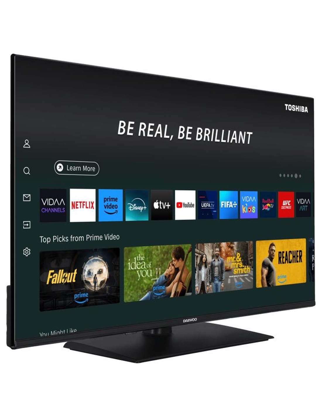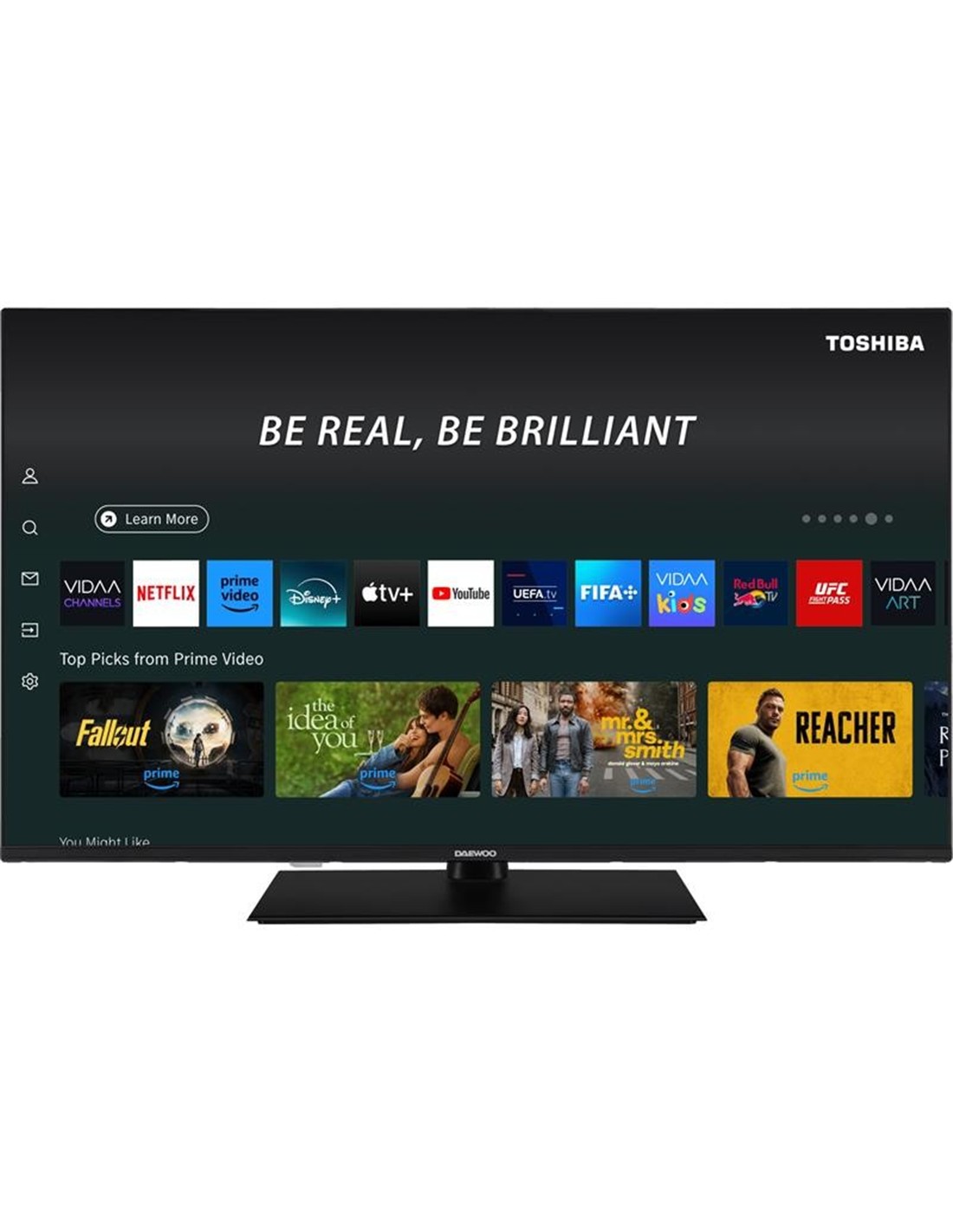 La Daewoo 43DM65QV es una Smart TV de 43 con panel QLED 4K UHD (3840 x 2160 px), diseñada para ofrecer una experiencia visual vibrante y nítida. Cuenta con sistema operativo VIDAA, acceso a aplicaciones como Netflix, Prime Video, Disney+ y YouTube, y un diseño ultra slim sin bordes.